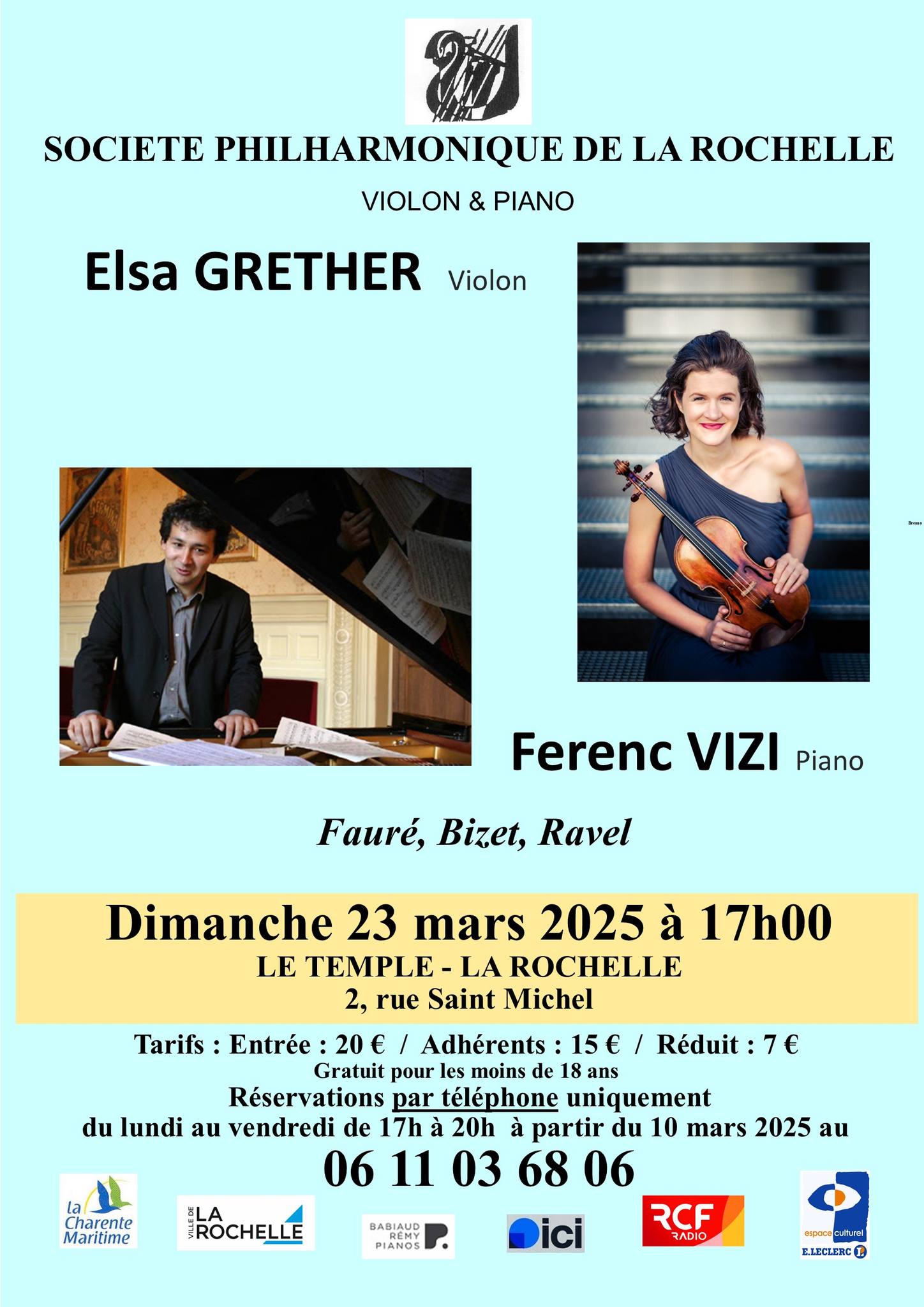 Alliant virtuosité et intériorité, nos artistes se produiront le dimanche 23 mars 2025 à 17h au Temple Protestant de LA ROCHELLE.